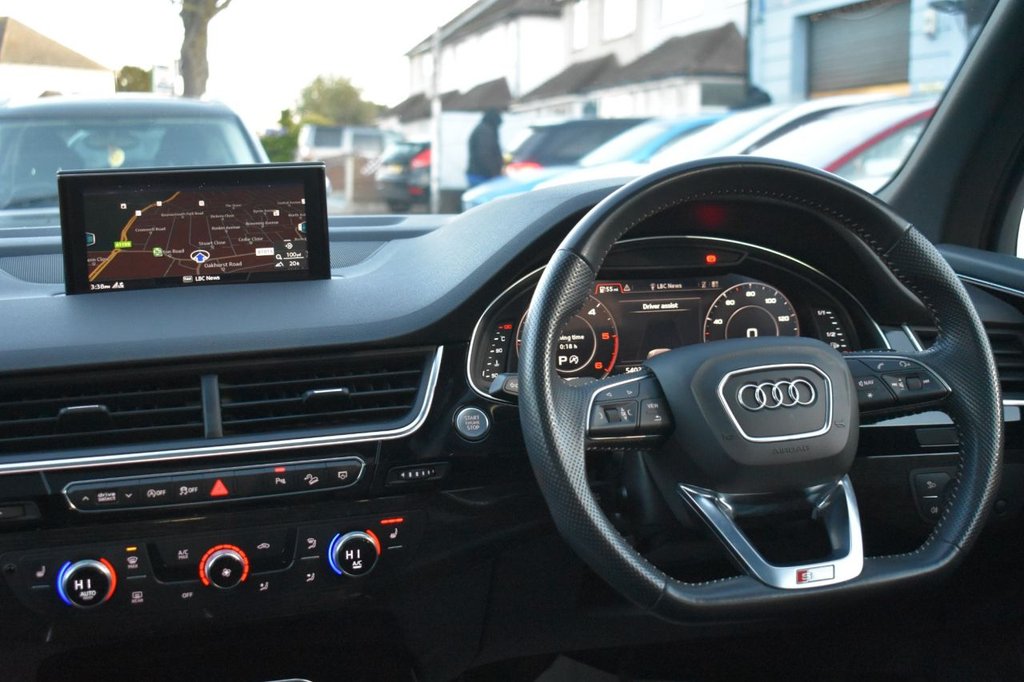 This 2019 Audi Q7 TDI V6 Black Edition boasts exceptionally low mileage for its age, having covered just 54,000 miles. This impressive seven seater SUV features a powerful 3.0 litre diesel engine paired with Audi's renowned four wheel drive system, ensuring excellent performance and grip. As a Euro 6 compliant vehicle, it meets stringent emission standards. The Black Edition trim enhances its already striking appearance, and it comes equipped with a comprehensive Full Leather Package, a Bluetooth Interface, and the Audi Smartphone Interface supporting both Android Auto and Apple CarPlay. Further enhancing convenience, it includes the Audi Phone Box with wireless charging capabilities and a spacious Panoramic Glass Sunroof that can be opened for an airy cabin experience. The Q7 TDI V6 Black Edition offers a compelling blend of luxury, performance, and practicality. Its acceleration from 0 to 60 miles per hour in just 6.3 seconds demonstrates its dynamic capabilities, while its substantial towing weight of 3500 kg makes it a versatile choice for those needing to tow. The low insurance group rating is a significant advantage, indicating lower running costs compared to similar vehicles. With an MOT valid until September 2026, this Audi Q7 provides peace of mind for its next owner, offering a sophisticated and capable driving experience. Finished in Orca Black. 2 previous owners and 2 keys. Comes with documented service history and a fresh service when required from our in house technicians who also perform a PDI upon arrival. With only 54,000 mile on the clock, this car is in great condition for its age and mileage! It comes with a range of extras such as virtual cockpit, sat nav, 7 seats and the desired panoramic sunroof! All our cars come with a minimum 6 months MOT as standard, so not to worry, we have you covered!