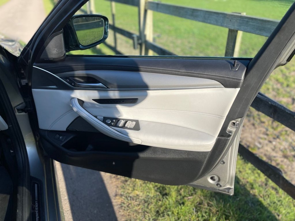 This car has done 121058 miles and has The BMW M5 Competition is a high-performance luxury saloon that exemplifies BMW's engineering excellence and commitment to dynamic driving. Combining the brute force of a twin-turbocharged V8 engine with cutting-edge technology and luxury, the 2021 model continues to push the boundaries of what a performance sedan can achieve. With 625 PS, advanced xDrive, and a suite of M-specific features, it's a machine that seamlessly merges power, precision, and comfort. Performance and Powertrain Engine: 4.4-liter twin-turbocharged V8 petrol engine Power Output: 625 PS (617 bhp) Torque: 750 Nm (553 lb-ft), ensuring relentless acceleration in any gear Transmission: 8-speed M Steptronic automatic gearbox with Drivelogic Drivetrain: M xDrive all-wheel-drive system with rear-wheel-drive mode for added agility Top Speed: Electronically limited to 155 mph (increased to 190 mph with optional M Driver's Package) Acceleration: 0-62 mph in a staggering 3.3 seconds Efficiency Fuel Economy: Approximately 25.4 mpg (WLTP combined cycle) CO2 Emissions: 243 g/km, compliant with Euro 6 emission standards Interior Features Seating: M multifunctional sports seats in Merino leather with heating, ventilation, and memory functions Dashboard: High-quality materials with carbon-fiber and aluminum trim accents Infotainment: BMW Live Cockpit Professional with a 12.3-inch digital instrument cluster and a central touchscreen Sound System: Harmon Kardon surround sound as standard; optional Bowers & Wilkins Diamond system for audiophiles Comfort: Four-zone climate control, ambient lighting, and a spacious rear cabin Practicality: 530 liters of boot space for exceptional usability Safety and Assistance Driver Assistance: Adaptive cruise control, lane-keeping assist, blind-spot detection, and parking assistant with a 360-degree camera Braking: M compound brakes as standard, with optional carbon-ceramic brakes for track performance Chassis: Adaptive M suspension with electronically controlled dampers for unparalleled ride and handling balance Airbags: Comprehensive airbag suite for driver and passenger safety Driving Dynamics The M5 Competition's M xDrive system delivers exceptional grip and agility, while its rear-wheel-drive mode ensures an engaging and dynamic experience for enthusiasts. The Active M Differential and customizable driving modes allow precise control over power distribution and handling. Paired with the M Servotronic steering, the M5 offers razor-sharp response and unparalleled stability.The BMW M5 Competition 2021 is a luxury saloon that dominates both the track and the road. Offering supercar-level performance, refined comfort, and innovative technology, it is the ultimate blend of practicality and thrill, setting a benchmark in the high-performance saloon category.