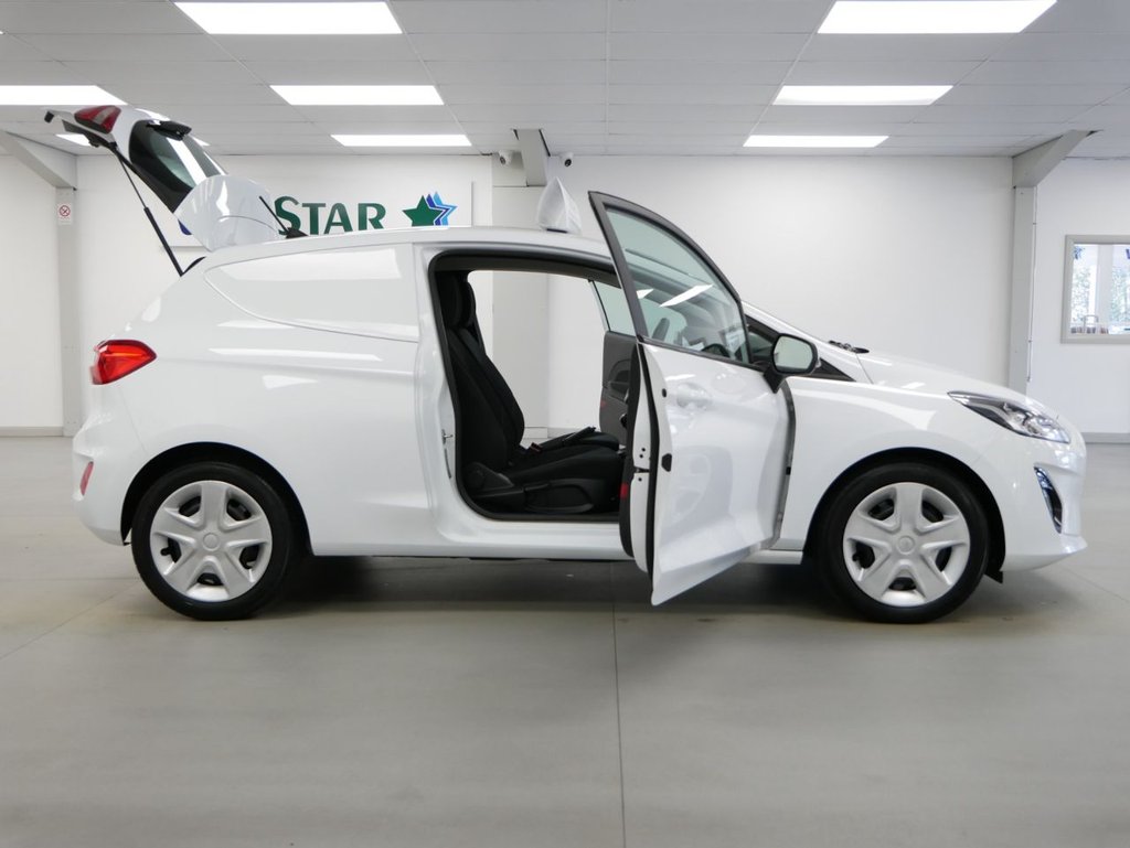 2020 Plate Ford Fiesta Van 1.5 TDCI 85 BHP 3 door . Very Rare High Spec Example in Frozen White with AIR CON, FACTORY SAT NAV MEDIA , Electric Windows + Mirrors , Remote Central Locking , Power Folding Door Mirrors , Factory Rear Parking Sensors , Bluetooth , Cargo Lining , Load Guard , Plus all usual styling and refinements found in the High Spec Fiesta Van models . Euro 6 Compliant . ONLY 1 OWNER FROM NEW , 64000 Miles , Excellent History ( 5 x Main Dealer Services ) . Great Spec , Physical Stock !