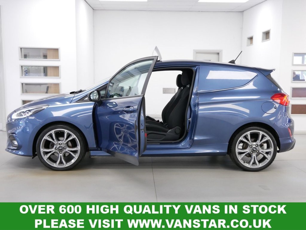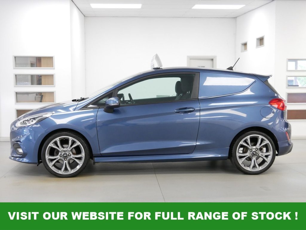 2019 Plate Ford Fiesta Van 1.5 TDCI 120 BHP Sport Edition 3 door .. Very Rare High Spec Example in Metallic Chrome Blue with Air Con , FACTORY SAT NAV MEDIA , HIGHER 120 BHP ENGINE OUTPUT , REAR PARKING CAMERA , HEATED FRONT SEATS , Electric Windows + Mirrors , Remote Central Locking , Power Folding Door Mirrors , Heated Front Screen , Factory Rear Parking Sensors , Bluetooth , Cargo Lining , Load Guard , Plus all usual styling and refinements found in the High Spec Fiesta Sport Van models .. Euro 6 Compliant .. Only 2 Owners , 72000 Miles , Excellent History ( 8 x Services ) .. Great Spec , Physical Stock !