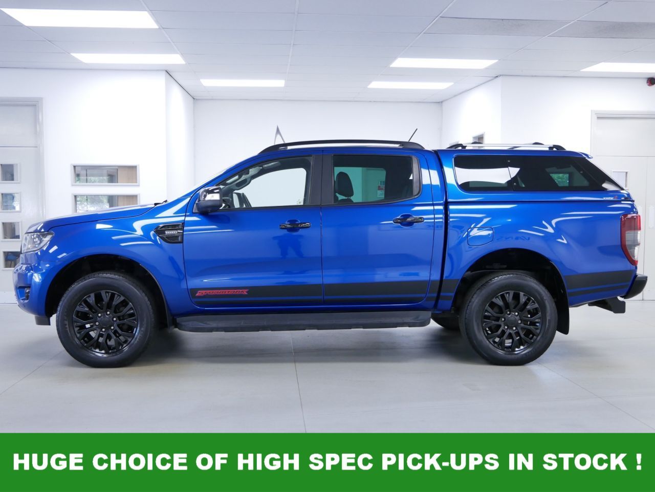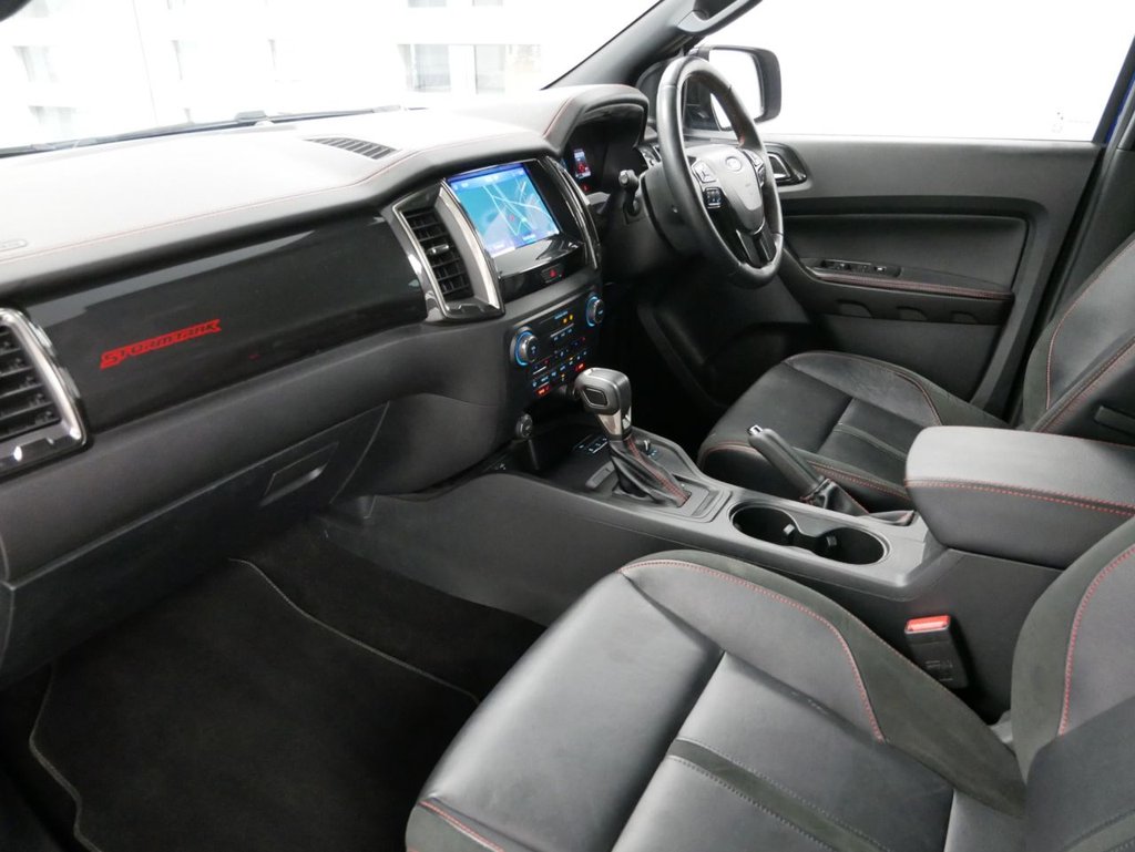 2022 Plate Ford Ranger 2.0 EcoBlue 213 BHP Stormtrak Edition 4WD Automatic Crewcab Pickup .. High Spec Example in Blue with Air Con , Black Alloys , FACTORY SAT NAV MEDIA , FULL BLACK LEATHER INTERIOR , AUTOMATIC GEARBOX , FOUR WHEEL DRIVE , HARDTOP GLAZED CANOPY , Heated Seats , Electric Windows + Mirrors , Power Folding Mirrors , Privacy Glass , Limiter + Cruise Control , Bluetooth , DAB Radio , Reverse Camera , Park Sensors , Load Liner , Roof Rails , Side Steps , Upgraded Ford Grill , Tow Pack , Plus all usual styling and refinements found in the the Higher Spec Stormtrak Edition models .. Euro 6 Compliant .. Only 1 Owner , Just 61000 Miles , Excellent History ( 3 x Main Dealer Services ! ) Great Spec , In Stock , Ready To Go !