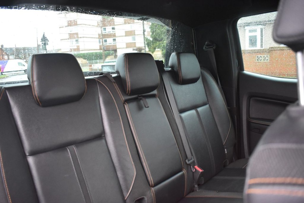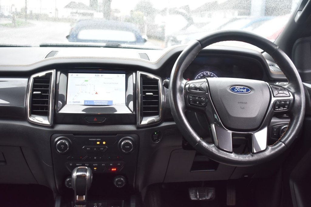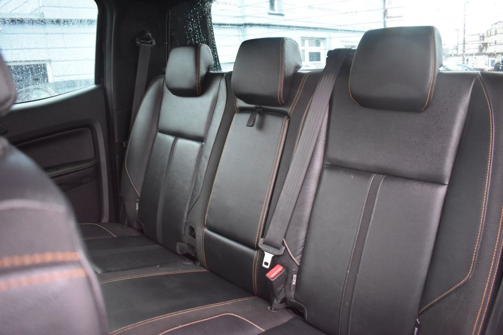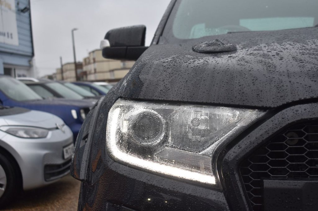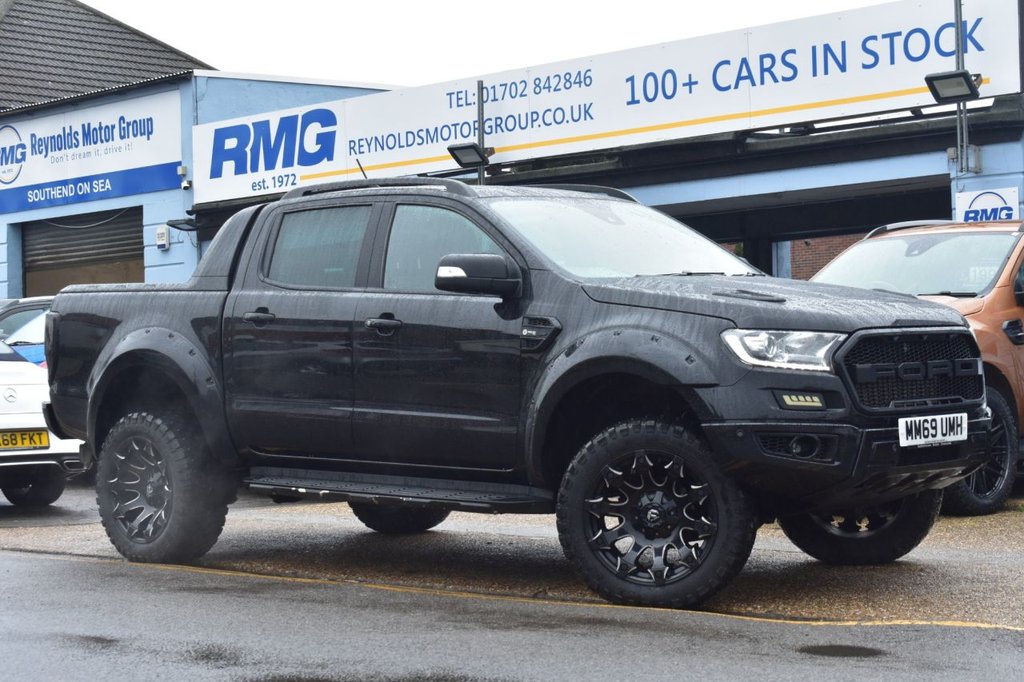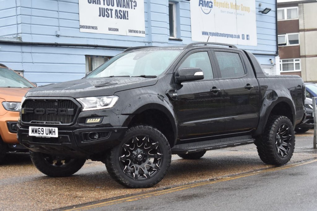 This 2020 Ford Ranger Wildtrak boasts an MOT valid until January 2027, offering excellent peace of mind. This Double Cab Pickup is presented in a desirable Wildtrak trim, featuring a striking Raptor style body kit and 20 inch alloy wheels. Under the bonnet lies a powerful 2.0 litre EcoBlue diesel engine, delivering an impressive 210 bhp and paired with a smooth automatic transmission. Its Four Wheel Drive system ensures capability in various conditions, while the Euro 6 emission class highlights its efficiency. This Ranger is also equipped with a trailer tow pack including a towbar, ready for towing up to 3500 kg, and comes with two keys. Further enhancing its appeal, this Ranger Wildtrak includes Bi-Xenon headlights for superior visibility, a leather wrapped steering wheel for a comfortable grip, and Electronic Stability Control alongside Traction Control for confident handling. The inclusion of an ICE pack suggests an enhanced audio experience. The vehicle's low CO2 emissions are a notable advantage, indicating a more environmentally conscious choice compared to similar vehicles. This Ford Ranger is a well equipped and capable pickup designed for both work and leisure.