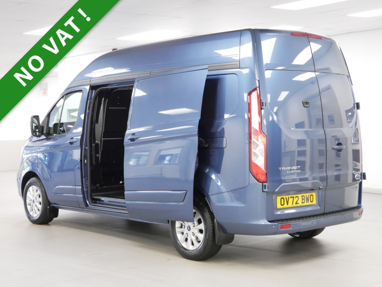 NO VAT ! . 72 Plate Ford Transit Custom 320 2.0 EcoBlue 170 BHP L2 Long Wheelbase H2 High Roof Limited Edition Automatic 5dr . High Spec NO VAT Example in Blue Metallic with Air Con , CARPLAY MEDIA , AUTOMATIC GEARBOX , L2 LONG WHEELBASE , H2 HIGH ROOF , Upgraded 320 Weight Spec , Higher 170 BHP Engine Output , 3 x Seats , Electric Windows + Mirrors , Remote Central Locking , Heated Front Screen , Bluetooth , Heated Front Seats , DAB Radio , Factory Front + Rear Parking Sensors , Factory Rear View Parking Camera , Cargo Lined , Bulkhead , Plus all usual styling and refinements found in the Higher Spec Limited models . EURO 6 COMPLIANT . ONLY 1 OWNER FROM NEW , JUST 11000 MILES FROM NEW ! Main Dealer Serviced ! Great Spec , Best of all , NO VAT TO PAY !