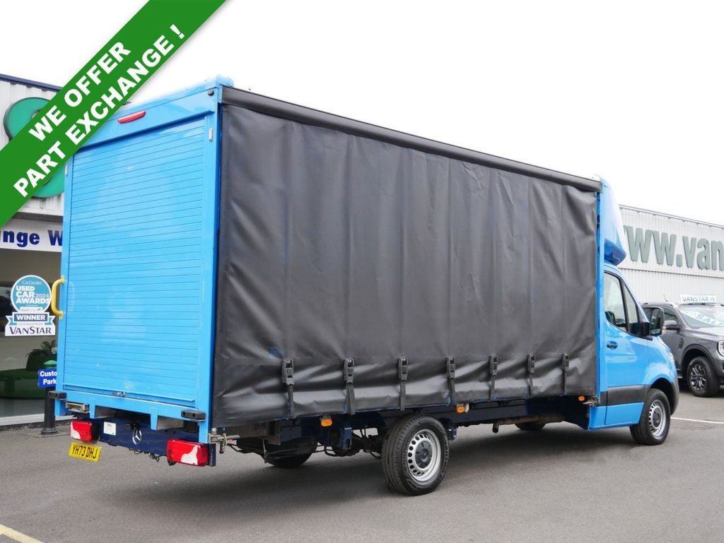 73 Plate Mercedes-Benz Sprinter 315 RWD 2.0 Cdi 150 BHP L5 XX-Long Wheelbase Progressive CURTAIN SIDE LUTON . High Spec Example in Blue with 3 x Seats , AIR CON , DUAL CURTAIN SIDE , L5 XX-LONG WHEELBASE , CARPLAY MEDIA , REAR WHEEL DRIVE, Electric Windows + Mirrors , Bluetooth , Power Steering , Remote Central Locking , Rear Parking Camera , Cruise Control , Automatic Lights , Plus all usual styling and refinements found in the High Spec Progressive models . Euro 6 Compliant . ONLY 1 OWNER , 31000 MILES , Serviced ! Great Spec , Physical Stock !