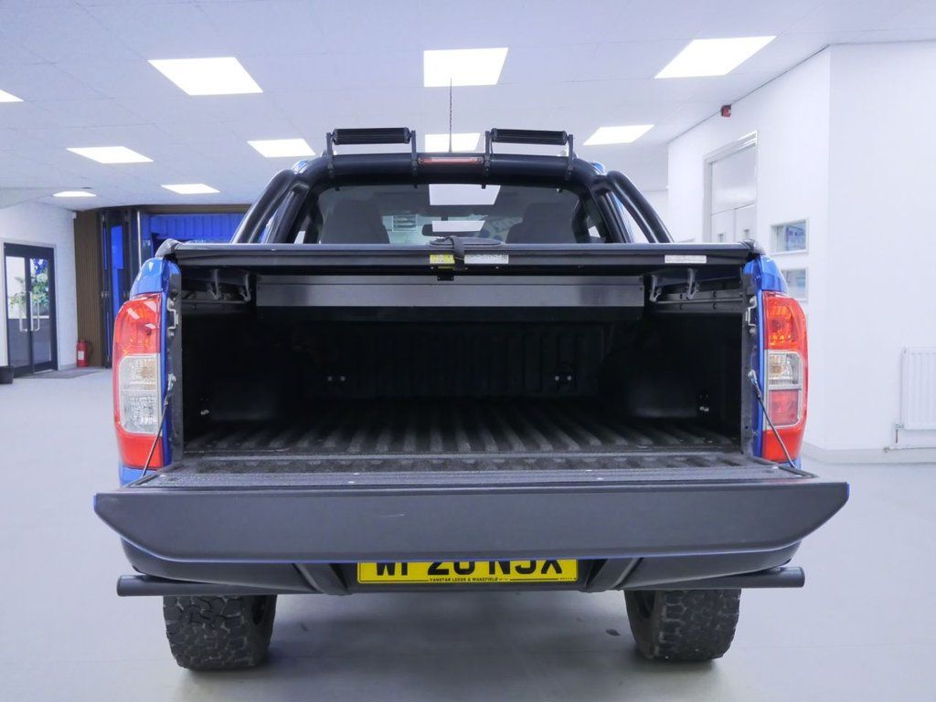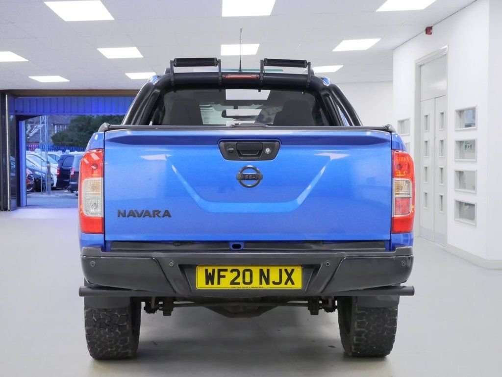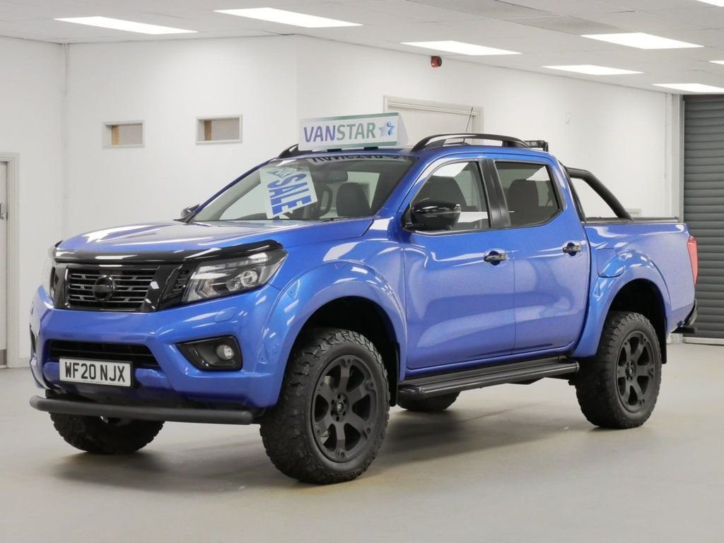 2020 Plate Nissan Navara 2.3 DCI 190 BHP N-Guard 4WD Automatic Crewcab Pick-Up .. HIGH SPEC EXAMPLE in Metallic Blue with Air Con, Black Upgraded Alloys, FACTORY SAT NAV MEDIA, WIDE ARCH DESIGN PACK, LOAD COVER, FOUR WHEEL DRIVE, AUTOMATIC GEARBOX, HALF LEATHER N-GUARD INTERIOR, Heated Seats, Electric Windows + Mirrors, Power Folding Mirrors, Privacy, Bluetooth, Cruise Control, Park Sensors, Reverse Camera, Tow Pack, Sports Roll Bars, Load Liner, Plus all usual styling and refinements found in the HIGH SPEC N-GUARD EDITION models .. EURO 6 COMPLIANT .. Just 44000 MILES, 3 x SERVICES / 1 x MAIN DEALER ! Great Spec, Ready to Go !