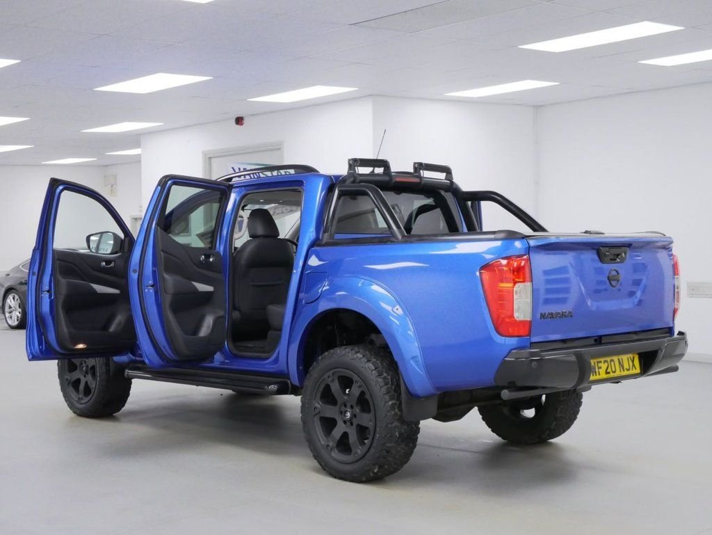 2020 Plate Nissan Navara 2.3 DCI 190 BHP N-Guard 4WD Automatic Crewcab Pick-Up . HIGH SPEC EXAMPLE in Metallic Blue with Air Con, Black Upgraded Alloys, FACTORY SAT NAV MEDIA, WIDE ARCH DESIGN PACK, LOAD COVER, FOUR WHEEL DRIVE, AUTOMATIC GEARBOX, HALF LEATHER N-GUARD INTERIOR, Heated Seats, Electric Windows + Mirrors, Power Folding Mirrors, Privacy, Bluetooth, Cruise Control, Park Sensors, Reverse Camera, Tow Pack, Sports Roll Bars, Load Liner, Plus all usual styling and refinements found in the HIGH SPEC N-GUARD EDITION models . EURO 6 COMPLIANT . Just 44000 MILES, 3 x SERVICES / 1 x MAIN DEALER ! Great Spec, Ready to Go !