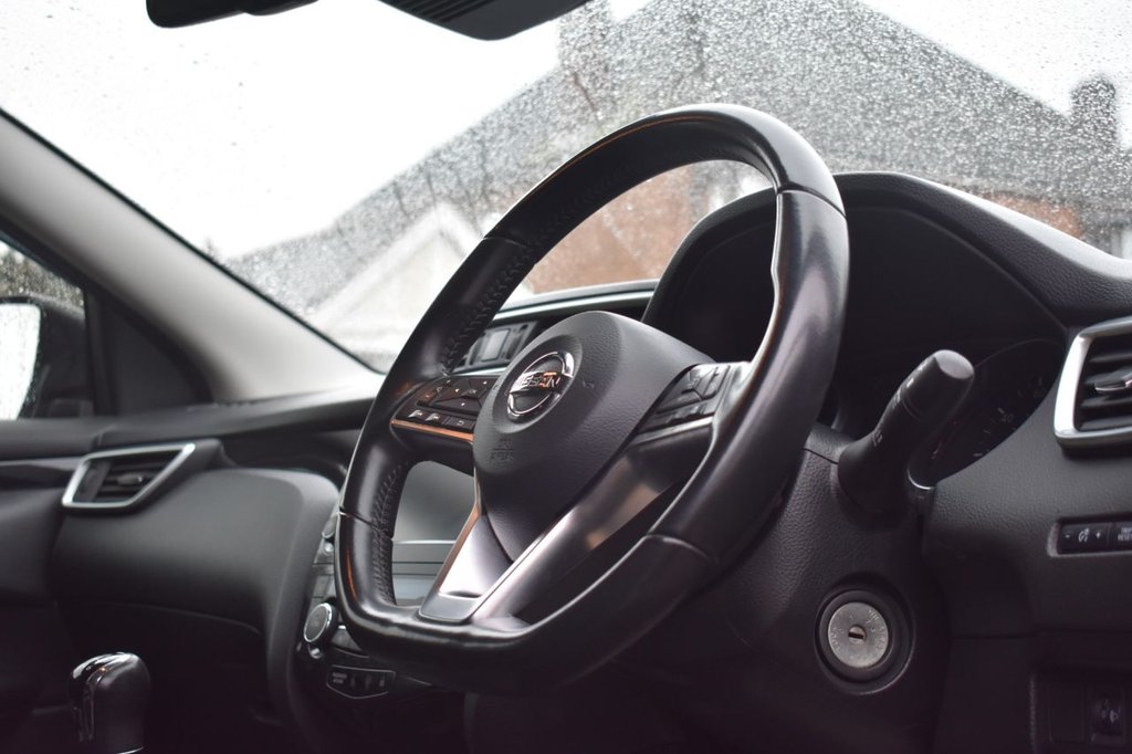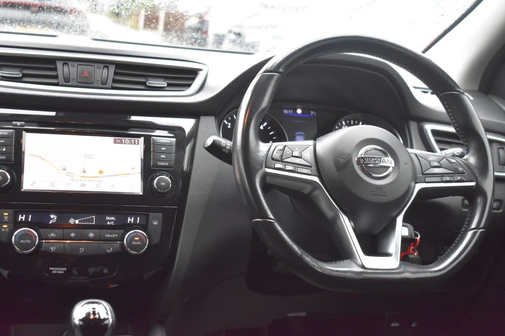 This 2019 Nissan Qashqai dCi Acenta Premium boasts an MOT valid until January 2027, offering you peace of mind for years to come. This stylish hatchback features a 1.5 litre diesel engine and is Euro 6 compliant. The Acenta Premium trim level comes equipped with the Smart Vision Pack, which includes front and rear parking sensors, alongside a rear view camera to aid manoeuvring. Inside, you'll find dual zone climate control air conditioning for comfortable journeys, and Bluetooth connectivity with audio streaming allows for seamless entertainment. Intelligent automatic headlights ensure optimal visibility in varying conditions. This Nissan Qashqai is designed to be economical and efficient. It achieves an impressive 53 miles per gallon, indicating lower fuel costs compared to many other vehicles. Furthermore, its low CO2 emissions and low insurance group rating mean that running costs are kept to a minimum, making it a sensible choice for everyday driving.