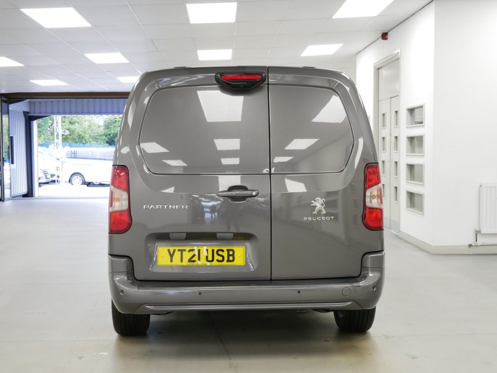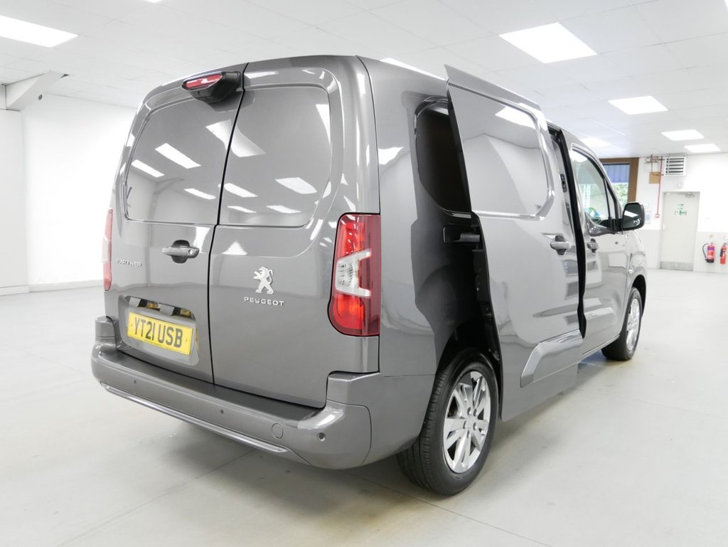 NO VAT ! . 2021 Plate Peugeot Partner XL 1.5 BlueHDI 130 BHP L2 Long Wheelbase Asphalt Edition EAT8 Automatic 6dr . High Spec No VAT Example in Metallic Grey with Air Con , Alloys , FACTORY SAT NAV MEDIA , XL LONG WHEELBASE , EAT8 AUTOMATIC GEARBOX , TWIN SIDE DOORS / 6 DOORS , 3 x Seats , Electric Windows + Mirrors , Power Folding Mirrors , Bluetooth , Cruise Control , Park Sensors , Reverse Camera + Side View Camera , Cargo Lining , Bulkhead , Plus all usual styling and refinements found in the High Spec Asphalt Edition models . Euro 6 Compliant . Only 2 Owners , Just 38000 Miles , 3 x Services ! Best of all , No VAT To Pay !