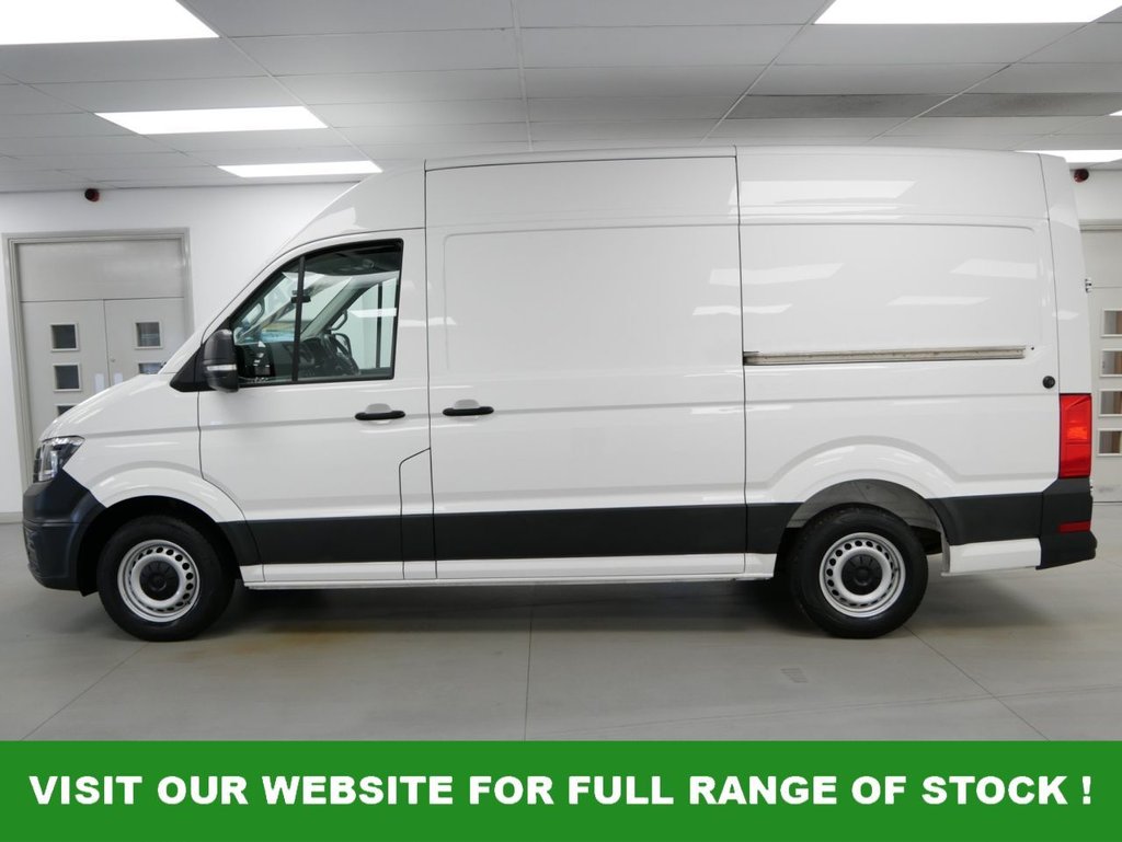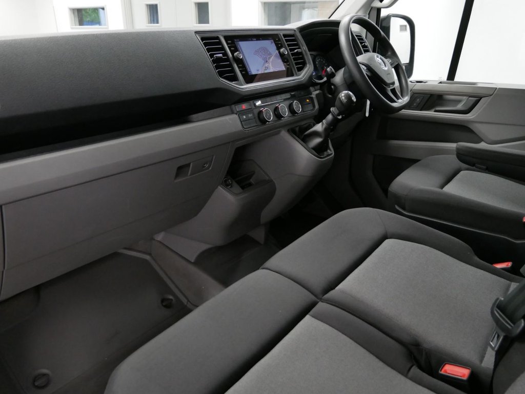 72 Plate Volkswagen Crafter CR35 2.0 TDI 140 BHP L2 Medium Wheelbase High Roof Trendline Edition 5dr . High Spec in Candy White with Air Con , 3 x Seats , FACTORY SAT NAV MEDIA , L2 MEDIUM WHEELBASE , HIGHER 140 BHP ENGINE OUTPUT , UPGRADED 350 WEIGHT CLASS , Electric Windows + Mirrors , Remote Central Locking , Bluetooth , Cruise Control , Factory Front & Rear Parking Sensors , Dab Radio , Cargo Lining , Bulkhead , Plus all usual styling and refinements found in the Higher Spec Crafter Trendline models . Euro 6 Compliant . ONLY 1 OWNER , 59000 Miles , Excellent History ( 3 x SERVICES ! ) . Great Spec , Physical Stock !