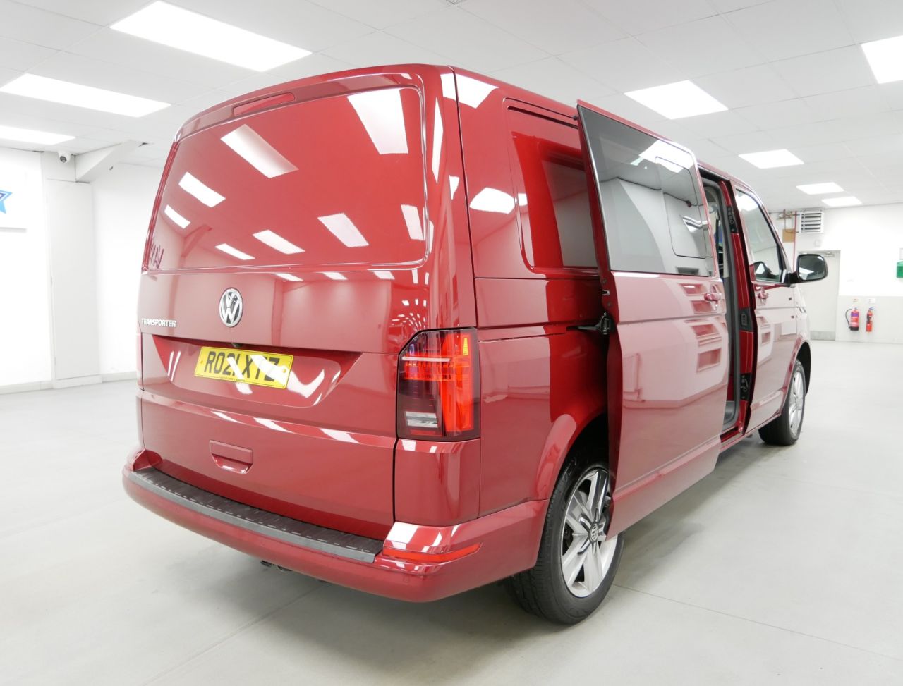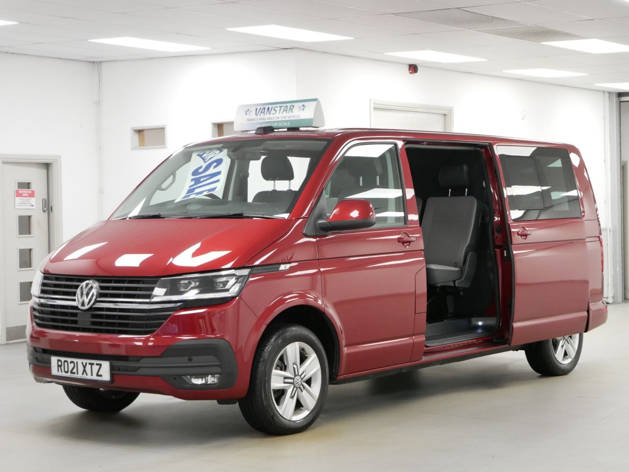 2021 Plate Volkswagen Transporter T32 2.0 BiTDI 204 BHP Long Wheelbase Highline DSG Automatic 5dr Kombi 5 Seater . Stunning High Spec Example in Metallic Fortana Red with Air Con , Alloys , FACTORY SAT NAV MEDIA , 5 SEATS , FULL LEATHER INTERIOR , HEATED FRONT SEATS , ELECTRIC SLIDING TWIN SIDE DOORS , DSG AUTOMATIC GEARBOX , HIGHER 204 BHP OUTPUT ENGINE , Solid Tailgate , Electric Windows + Mirrors , Power Folding Mirrors , Privacy , Bluetooth , Cruise Control , Park Sensors , Cargo Lining , Bulkhead , Plus all usual styling and refinements found in the High Spec Highline Edition models . Euro 6 Compliant . Only 1 Owner , Just 53000 Miles , Full Main Dealer Service History ! Great Spec , Ready to Go !